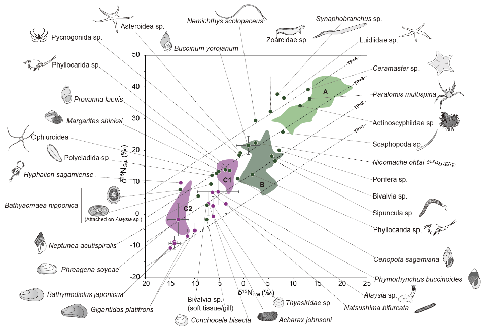 アミノ酸窒素同位体比分析と栄養段階推定から明らかになった化学合成生態系に生息する生物の多様な栄養生態